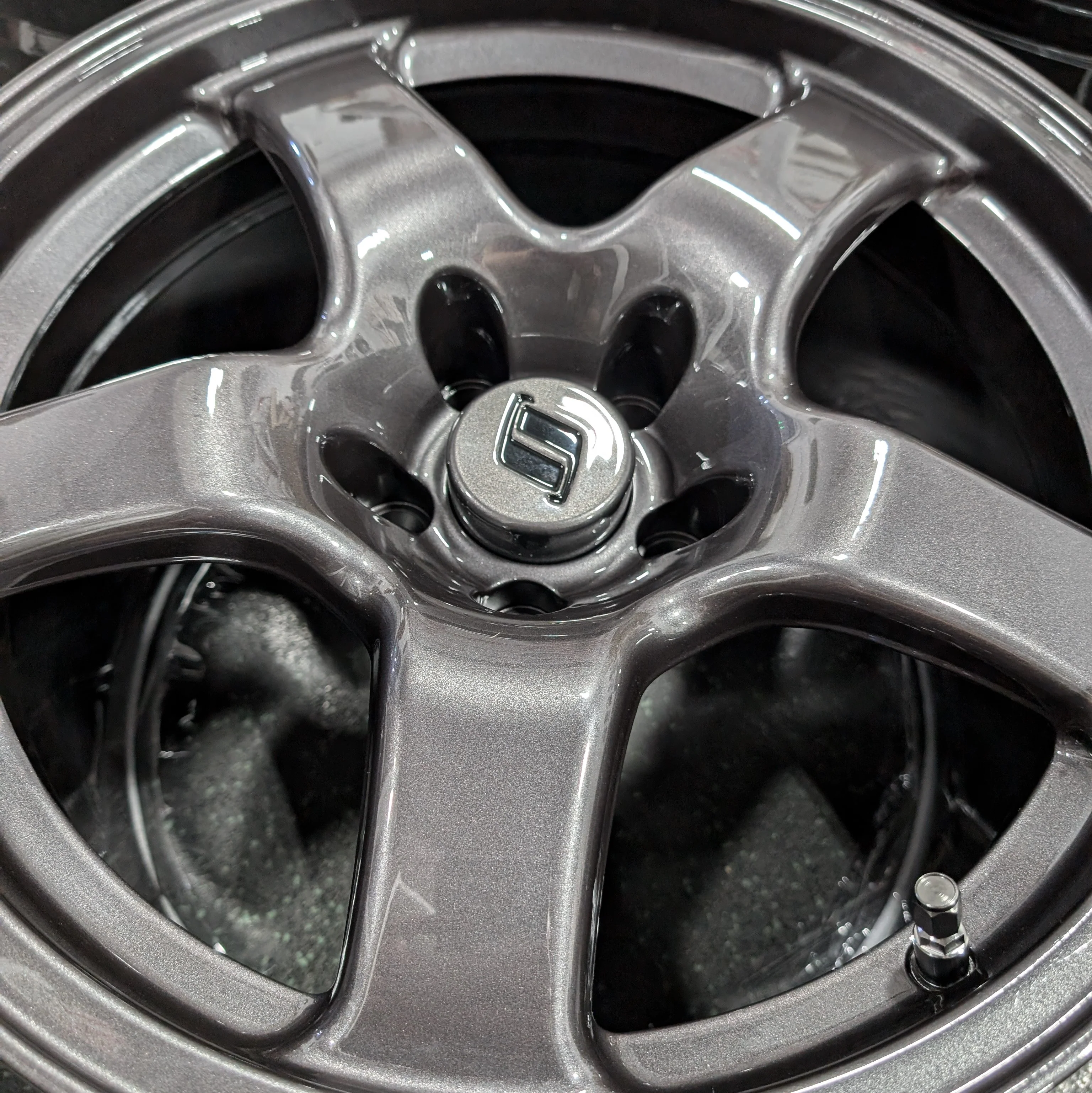 Finished in a deep gloss gunmetal with custom machined logo cap